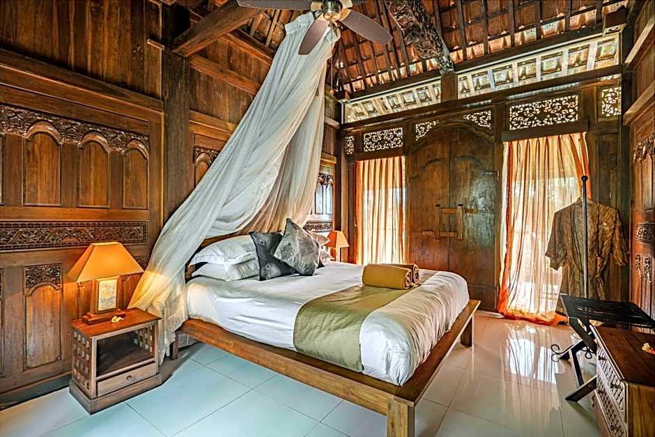 Overlooking the rainforest, this suite has beautiful teak carvings and a spacious balcony with a dining table and 2 daybeds.